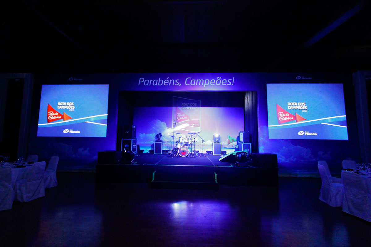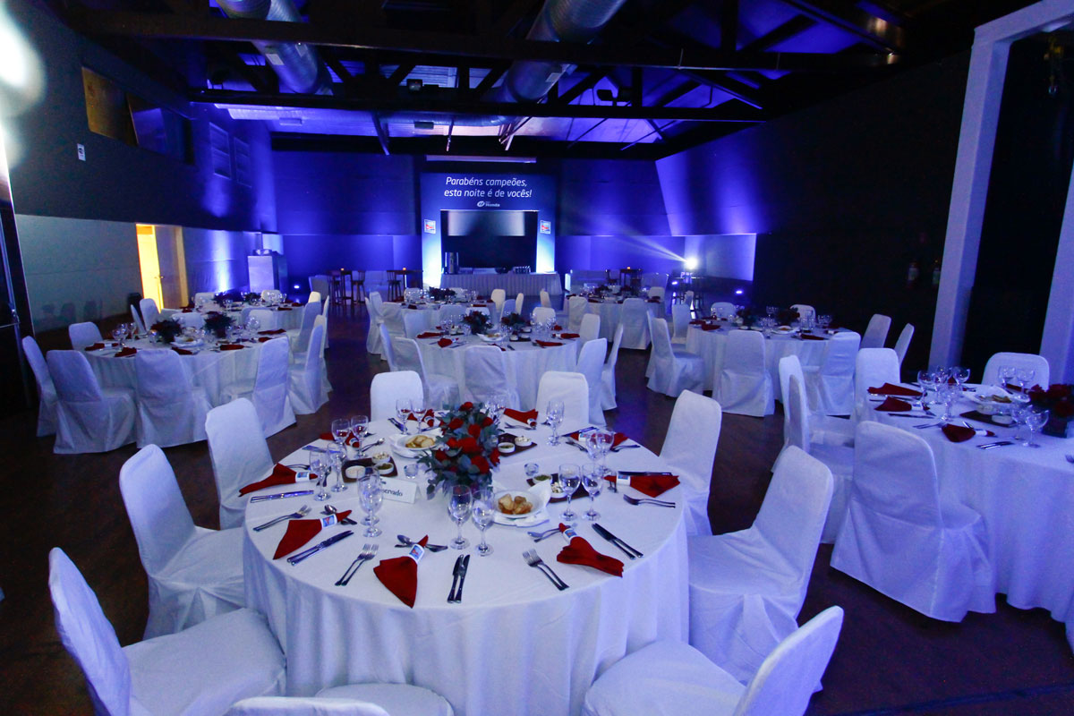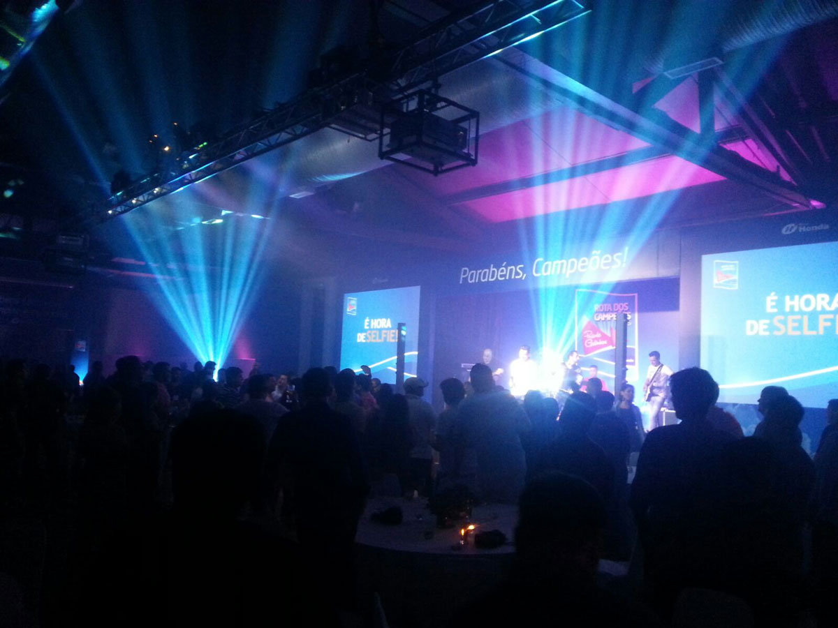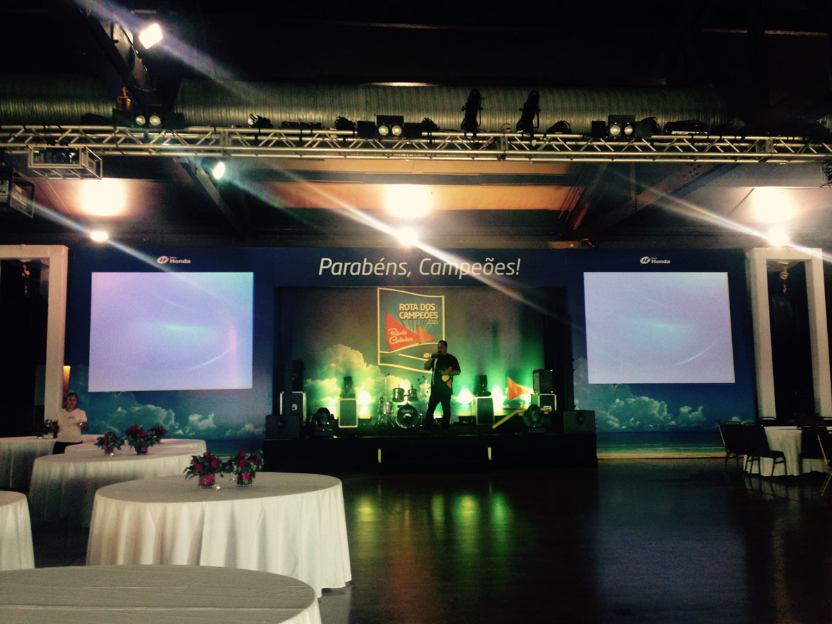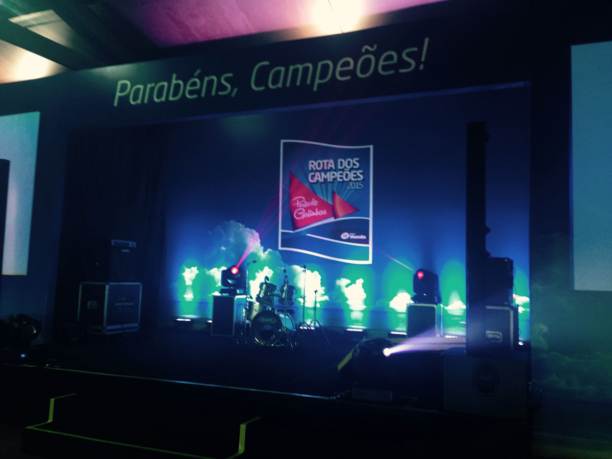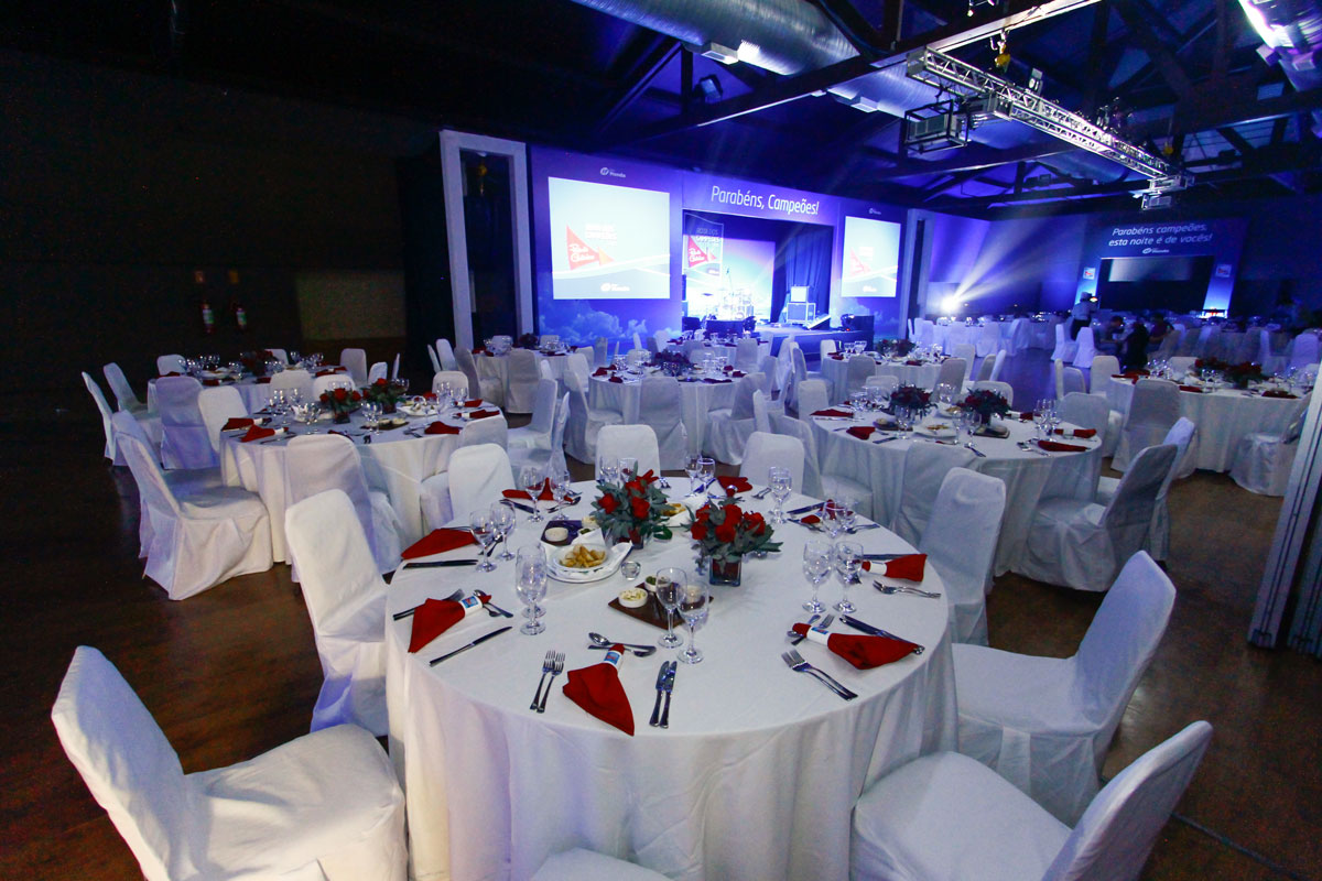 realizamos todos os serviços para o evento: Montagem interna em salão estrutura técnica de sonorização, projeção, cenografia, iluminação, palco e geradores para plenária e jantar, além de montagem de estrutura externa para festa de encerramento com layout de mobiliários palco cenografado, iluminação cênica para área externa e rider técnico de banda.